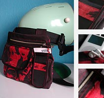 pochette pratique se portant à la taille ou l'épaule ou s'accrocher sur l'un des autres sacs, 1 poche zippée, 1 poche pour téléphone portable, et 2 poches à rabats pour un lecteur mp3 par exemple.